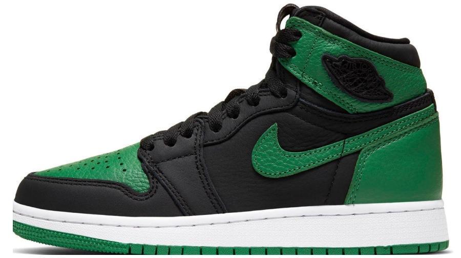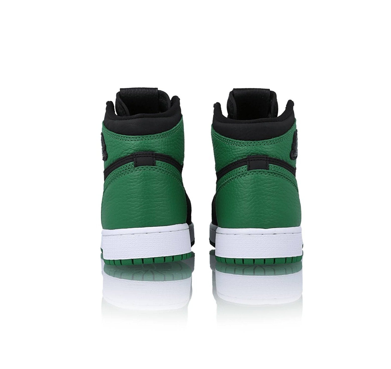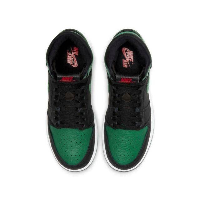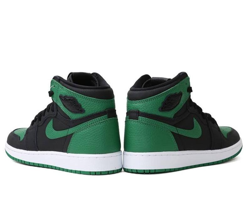 The Air Jordan 1 High Retro 'Pine Green' makes a statement with its full-grain leather upper in a mix of black and rich green tones. Classic paneling meets premium materials, while the high-cut collar nods to the original 1985 design. Finished with a white midsole and green outsole, this silhouette balances vintage roots with modern attitude.